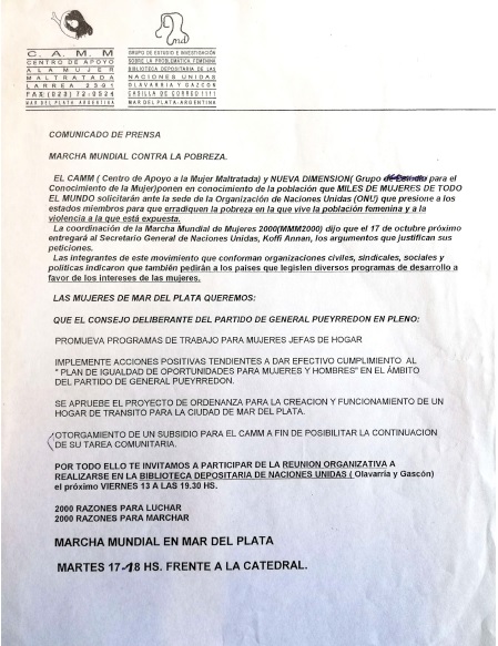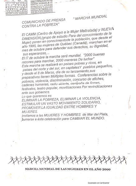 Comunicado de Prensa del Centro de Apoyo a la Mujer Maltratada y Nueva Dimensión convocando a la Marcha Mundial contra la Pobreza