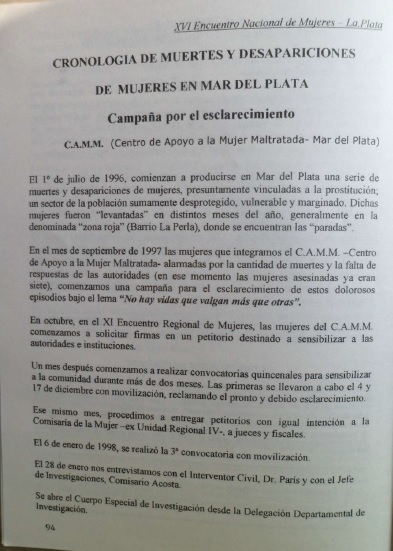 Informe Cronología de muertes y desapariciones de Mujeres en Mar del Plata