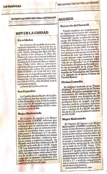 Nota periodística Se inaugura mañana. Centro de Apoyo a la Mujer Maltratada