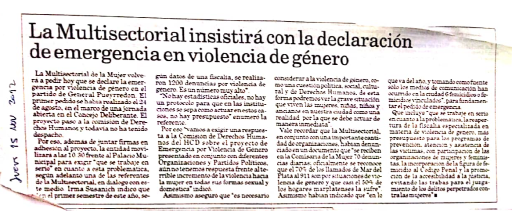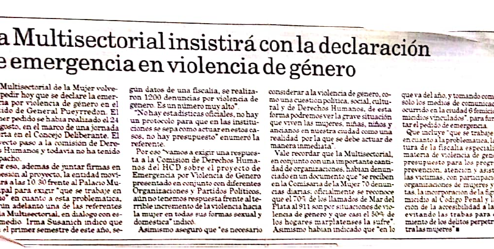 La Multisectorial insistirá con la declaración de emergencia en violencia de género
