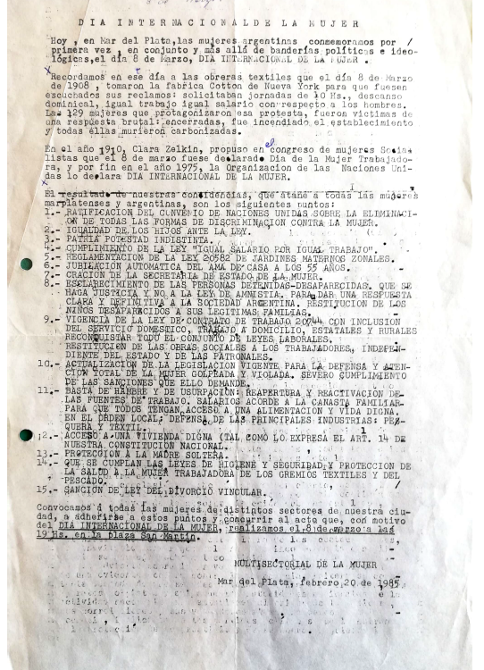 Pedido por los derechos, base del acto y marcha de la multisectorial