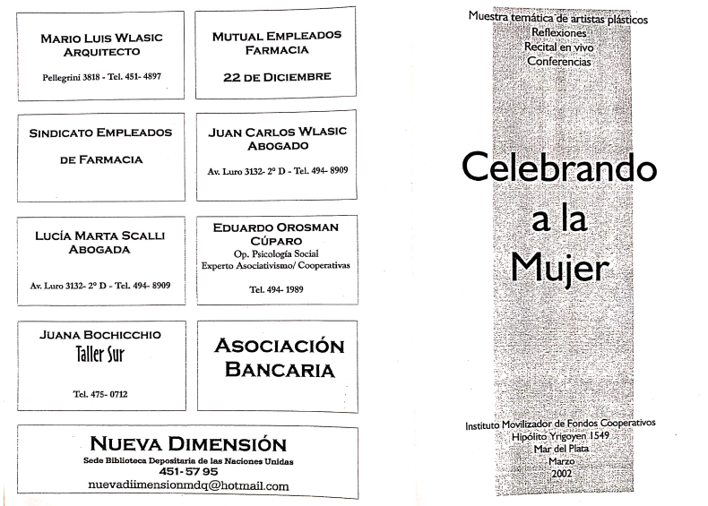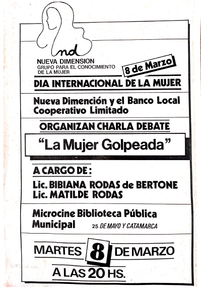 Folleto Día Internacional de la Mujer e invitación a charla «La mujer golpeada»