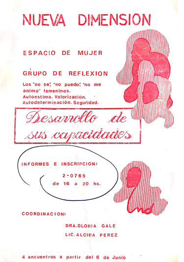 Folleto difusión espacio de mujer y grupo de reflexión: «Desarrollo de sus capacidades»