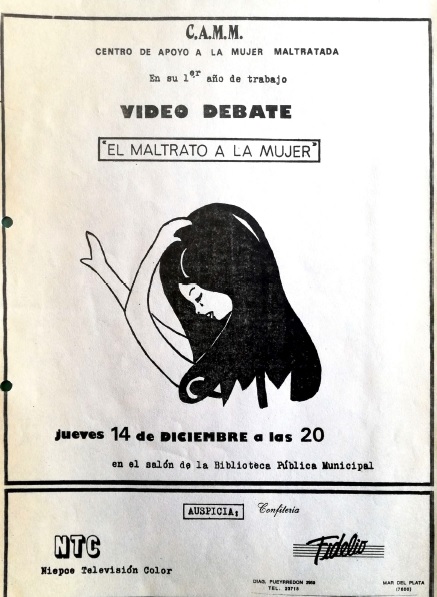 Folleto de difusión de Video Debate Primer aniversario del Centro de Apoyo a la Mujer Maltratada
