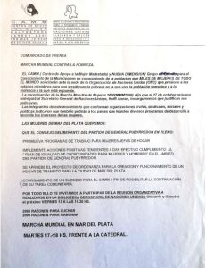 Comunicado de prensa por Marcha Mundial contra la Pobreza.