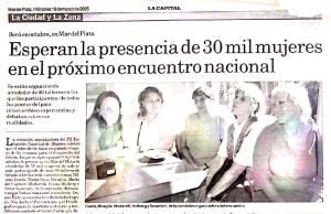 Nota periodística a la Comisión Organizadora sobre los preparativos del XX Encuentro Nacional de Mujeres, que se llevaría a cabo en la ciudad de Mar del Plata. Publicada el 16 de marzo de 2005.