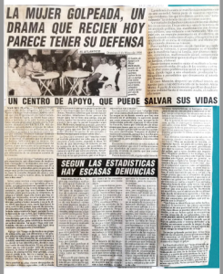 Nota periodística dedicada al Centro de Apoyo a la Mujer Maltratada (CAMM), sus objetivos y líneas de acción, a partir de una entrevista a Gloria Galé. La nota es acompañada por una fotografía de las integrantes del CAMM y un cuadro titulado «Según las estadísticas hay escasas denuncias».
