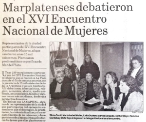 Nota periodística Marplatenses debatieron en el XVI Encuentro Nacional de Mujeres
