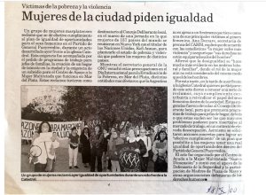Nota periodística sobre reclamo de cumplimiento del plan de igualdad de oportunidades para mujeres.