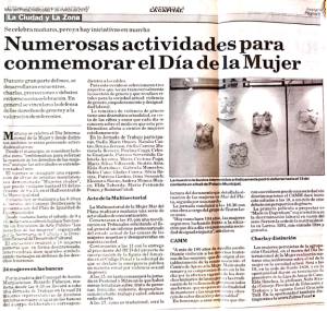 Nota periodística en la que se enumeran las actividades que distintas organizaciones realizarían en la ciudad de Mar del Plata en el marco del Día Internacional de la Mujer.