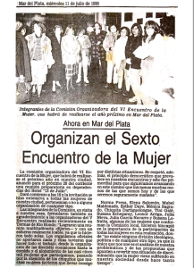 Nota periodística sobre la organización del Sexto Encuentro de la Mujer. 11 de julio de 1990.