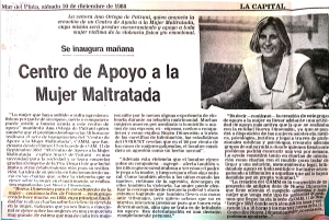 Nota periodística publicada el 10 de diciembre de 1988, en la que se anuncia la inauguración del Centro de Apoyo a la Mujer Maltratada.